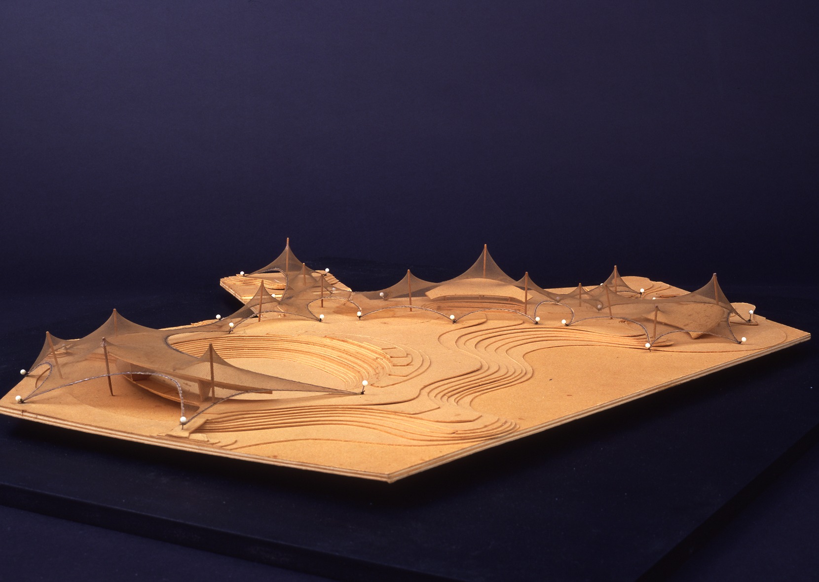 Behnisch & Partner, Ideas and Building Competition for the Buildings and Facilities of the XX Olympic Games Munich 1972 on the Oberwiesenfeld in Munich, model, M 1:1000, 1967, © Architekturmuseum der TUM, Sign. beh-1-14